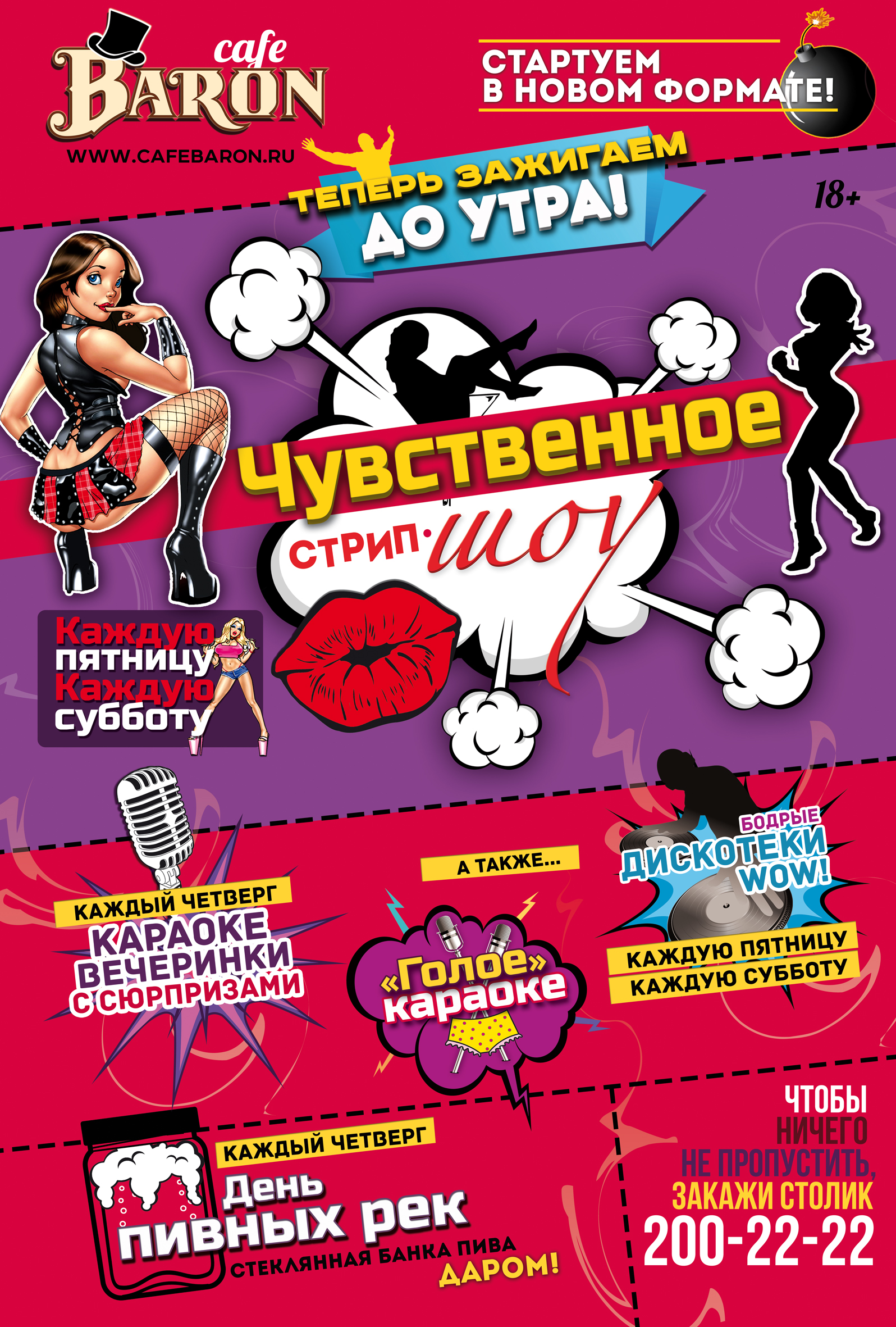 Чувственное стрип ШОУ каждую пятницу и субботу в кафе Барон! Теперь зажигаем до утра!